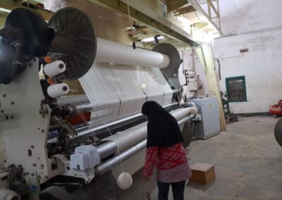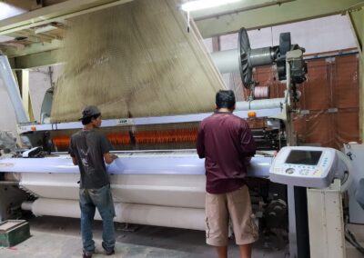 Menggunakan mesin tenun yang canggih, sehingga bisa melayani pemesanan kain ihram secara custom dengan logo dan nama.
